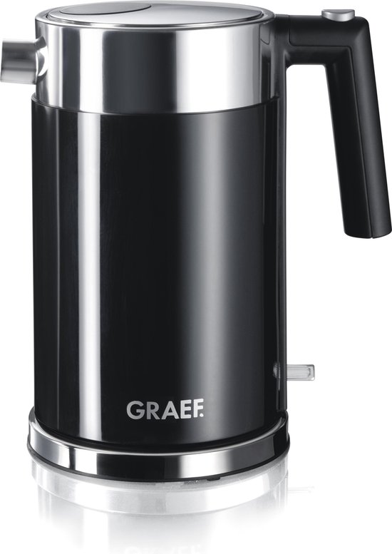 Deze waterkoker WK62 van Graef schakelt vanzelf uit wanneer het water kookt en is voorzien van een droogkook- en oververhittingsbeveiliging. Het deksel opent geruisloos met één druk op de knop, en de grote opening maakt vullen eenvoudig. De snoerloze ketel heeft een inhoud van 1,5 liter en is dubbelwandig – met een roestvrij stalen binnenbehuizing en een kunststof buitenbehuizing. De ketel heeft bovendien een maatverdeling aan de binnenzijde en een kalkfilter, dat uitneembaar is voor eenvoudig schoonmaken. De kan is 360 graden draaibaar naar iedere gewenste positie, en als je minder snoerlengte nodig hebt, rol je het snoer netjes op in het kabeldepot aan de onderzijde.
