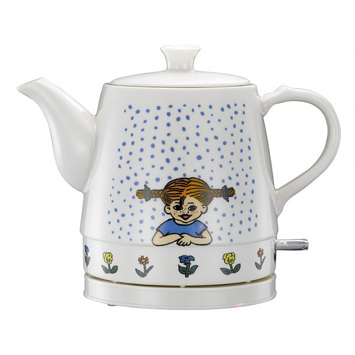 Pippi 20130001 – Pippi Langkous keramische waterkoker – 0,8 Liter – Pippi circus design Pippi Wit