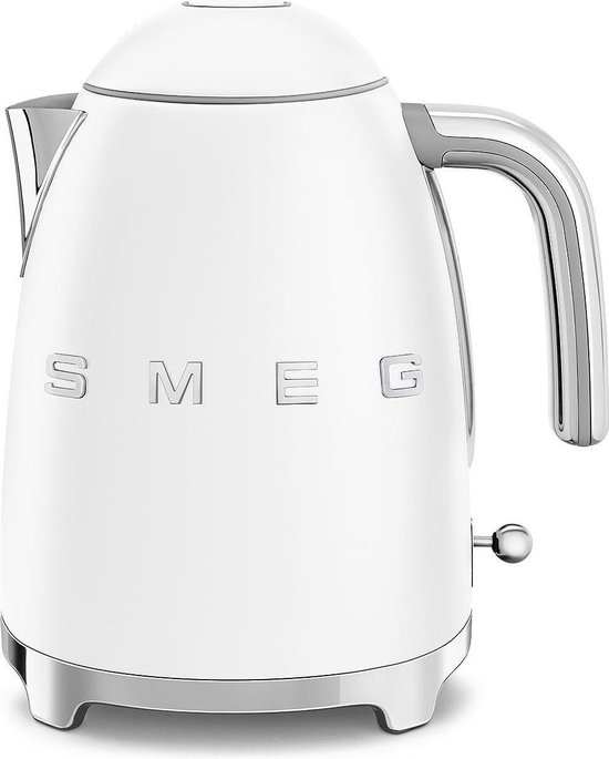 De SMEG waterkoker KLF03 in het mat wit maakt het koken van water nog leuker! Hij is gemaakt van roestvrij staal en herkenbaar door de iconische Jaren ’50 style. Deze wordt gekenmerkt door zijn ronde vormen en de levendige kleuren. De waterkoker is naast de 8 standaardkleuren ook beschikbaar in een aantal speciale editie kleuren. Naast de kleuren goud en roze goud is hij namelijk ook verkrijgbaar in de trendkleuren mat zwart, mat wit en mat champagne. Deze uitvoering in de mat witte kleur weerspiegelt een luxe uitstraling in je keuken.