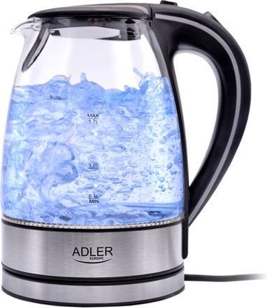 Een Top Choice waterkoker van het merk Adler. Deze geweldige elektrische waterkoker. is geschikt om water te koken voor wel 6 tot 7 personen. Dankzij de kracht van 2000 W is deze waterkoker een hele snelle jongen. De waterkoker is voorzien van een helder waterniveau indicator en automatische uitschakeling zodra het water kookt. De droogkook beveiliging voorkomt dat je de waterkoker kan aanzetten als er geen water in zit waardoor er energie wordt bespaard en de veiligheid verhoogd. Ook zit er een speciaal filter in om de waterkwaliteit te verbeteren. De 360 graden draaibare voet en de vlakke bodem verhogen het gebruikers gemak en het wit gekleurde modern design maakt deze waterkoker ook nog eens een plaatje om naar te kijken. Het verwarmingselement is gemaakt van hoogwaardig roestvrij staal en een extra lampje die u informeert dat het water net heeft gekookt. De glazen waterkoker, met gehard glas en een prachtige LED gloed is niet alleen van hoge kwaliteit maar straalt dat ook uit.